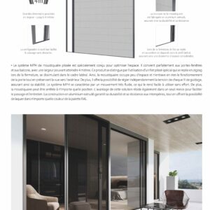 Système de moustiquaire simple et fonctionnel. Dissimulé dans le profilé latéral, le système est idéal et s’adapte à toutes les fenêtres, portes fenêtre, portes de terrasse jusqu’à 4 mètres de large. La construction est en aluminium extrudé, ce qui la rend résistante aux intempéries. Facile en pose et en utilisation. Peut être placée sur toutes les menuiserie en baie coulissante ou fenêtre battante.
