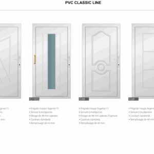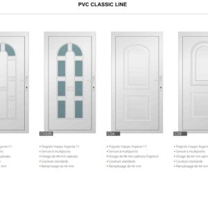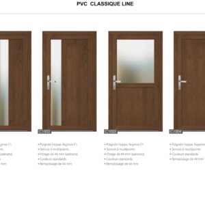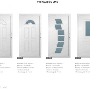 Porte PVC Classic avec système de 6 chambres en 82 mm. Panneau de 44 mm avec triple vitrage de 44 mm. Vérouillage automatique à 3 points ou 5 point .